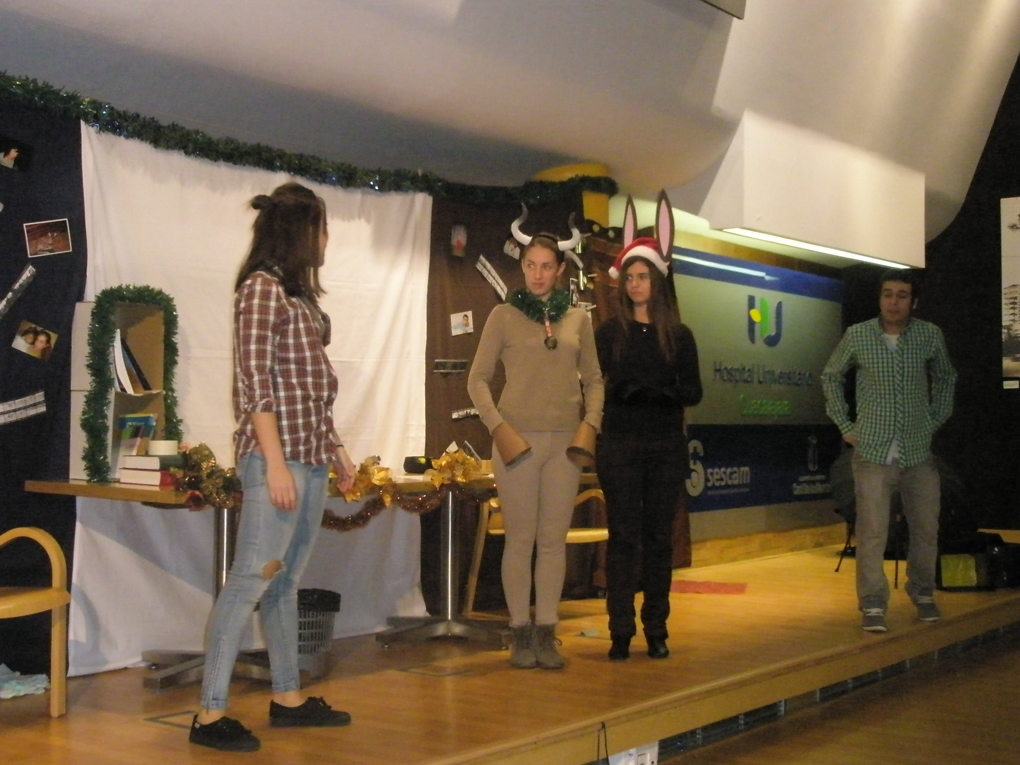 Un año más se ha llevado a cabo con un gran éxito de público y de crítica la celebración de la fiesta de Navidad organizada desde el aula hospitalaria “La Pecera” (EAEHD de Guadalajara). En esta ocasión los alumnos de 4º curso de Medicina han representado la obra teatral, “La foto de Navidad”, escrita y dirigida por los propios alumnos. En ella todos los personajes de la Navidad: la Virgen María, San José, los Reyes Magos, Herodes, los pastores, los ángeles, el buey y la mula, etc., posan para la foto de familia de la Navidad del año 2014; mientras tiene lugar la foto se producen todo tipo de incidentes. Todos los asistentes, entre los que se encontraban los alumnos del Colegio Especial Virgen del Amparo, alumnos de otros cursos de Medicina, personal médico y sanitario, etc. disfrutaron de lo lindo con esta magnífica representación.